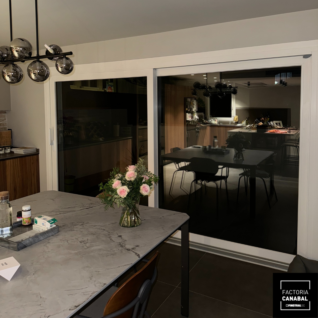 La porta corredissa de Finstral es composa d’un fix i una fulla que es desllisa arran una solera plana. Tenir l’encreuament de la corredissa fix permet que la corredissa tingui major estanquitat. Aquest tipus de corredissa ens permet garantir un bon aïllament i ens proporciona una funcionalitat sense precedents per fer de nexe entre una estancia de la nostra llar i la terrassa o el balcó.