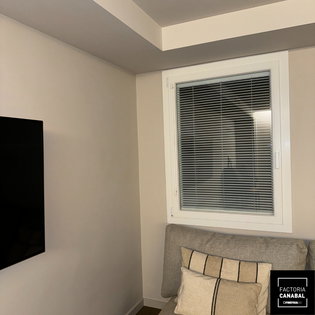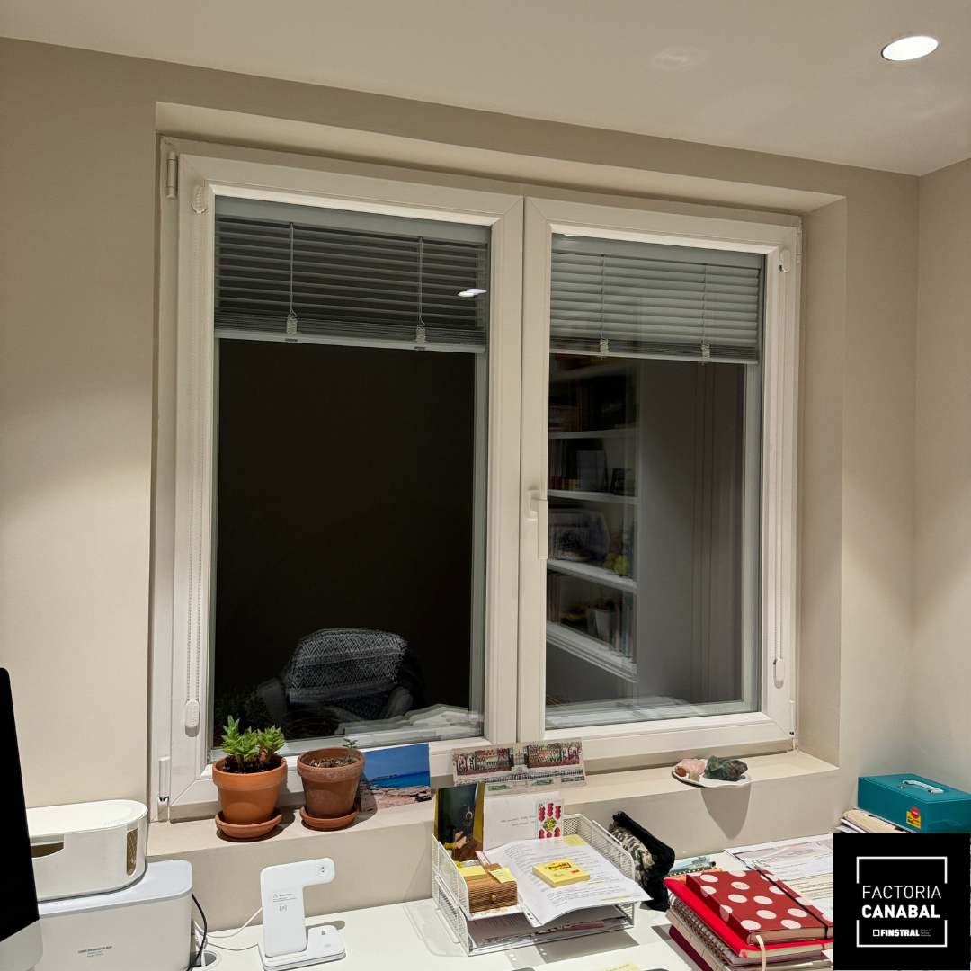 Les finestres de pvc de Finstral poden integrar una veneciana en una segona càmara dinàmica. Aquest model amb veneciana interior és perfecte per certes estancies on interessa regular la llum que entra.